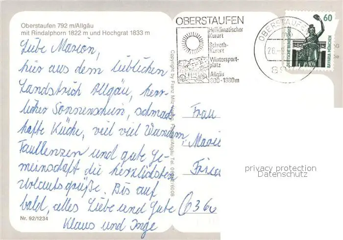 Oberstaufen Rindalphorn Hochgrat Oberstaufen postalisch gelaufen nach 1965 Erhaltung siehe scans [PaolaD17] PaolPID1