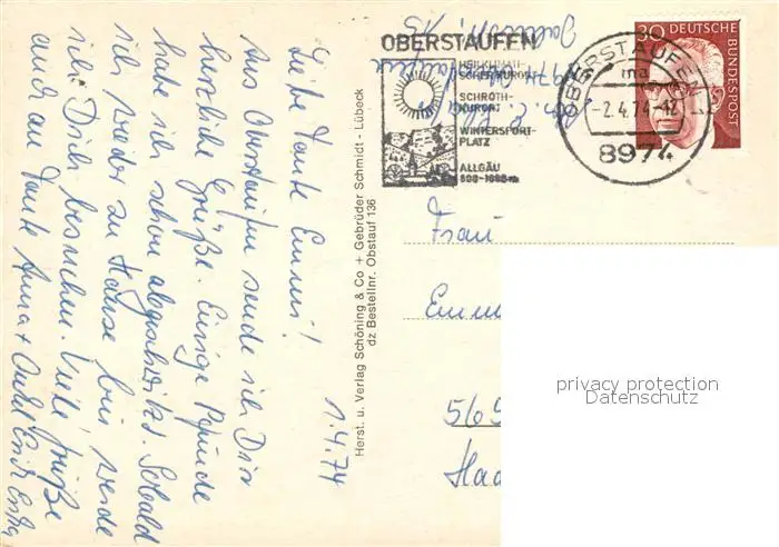 Oberstaufen Schwimmbad Brunnen Oberstaufen postalisch gelaufen 1974 Erhaltung siehe scans [NatalD47] NataID47