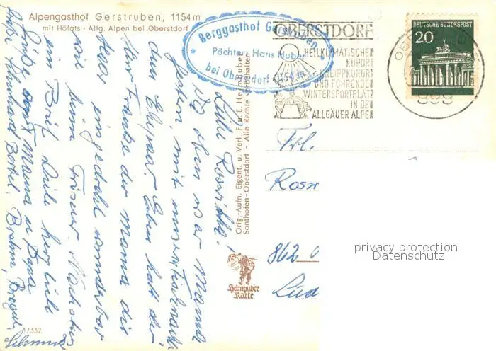 Oberstdorf Alpengasthof Gerstruben Alpen Oberstdorf postalisch gelaufen nach 1965 Erhaltung siehe scans [FriedD77] Frierer