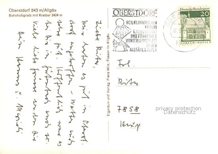 Oberstdorf Bahnhofsplatz mit Kratzer Oberstdorf postalisch gelaufen nach 1965 Erhaltung siehe scans [WerneD78] WernPID7