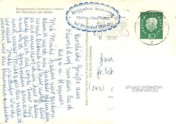 Oberstdorf Berggasthaus Gerstruben mit Hoefats Allgaeuer Alpen Oberstdorf postalisch gelaufen 1961 Erhaltung siehe scans [FriedD77] Frierer