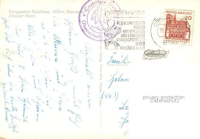 Oberstdorf Berggasthof Oytalhaus Oberstdorf postalisch gelaufen nach 1965 Erhaltung siehe scans [NatalD47] NataID47