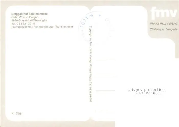 Oberstdorf Berggasthof Spielmannsau Oberstdorf postalisch nicht gelaufen nach 1965 Erhaltung siehe scans [WerneD78] WernPID7
