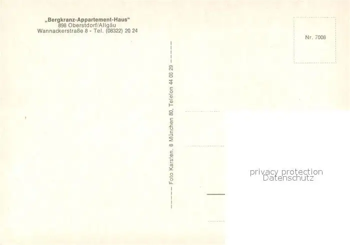 Oberstdorf Bergkranz-Appartement-Haus Aussenansicht Oberstdorf postalisch nicht gelaufen nach 1965 Erhaltung siehe scans [LiesaD40] LiesID40