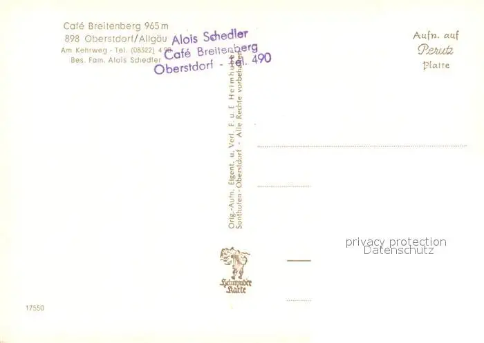 Oberstdorf Café Breitenberg Alpenblick Oberstdorf postalisch nicht gelaufen 1921-1965 Erhaltung siehe scans [FriedD77] Frierer