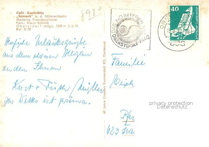 Oberstdorf Café Gaststaette Sonneck an der Soellereckbahn Sessellift Alpen Blauer Enzian Oberstdorf postalisch gelaufen 1978 Erhaltung siehe scans [FriedD77] Frierer