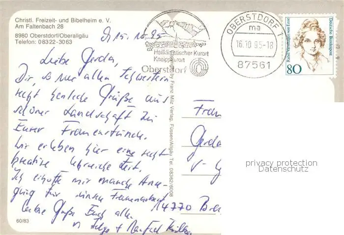 Oberstdorf Christliches Freizeitheim Gastraeume Panorama Oberstdorf postalisch gelaufen 1995 Erhaltung siehe scans [WerneD78] WernPID7