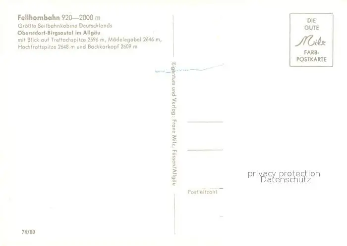 Oberstdorf Fellhornbahn mit Trettachspitze Maedelegabel Hochfrottspitze und Bockkarkopf Oberstdorf postalisch nicht gelaufen nach 1965 Erhaltung siehe scans [WerneD78] WernPID7