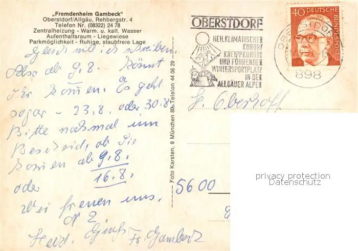 Oberstdorf Kategorie Alte Ansichtskarten Postkarten bx60051 Oberstdorf Fremdenheim Gambeck Oberstdorf postalisch gelaufen 1971 Erhaltung siehe scans [WerneD78]