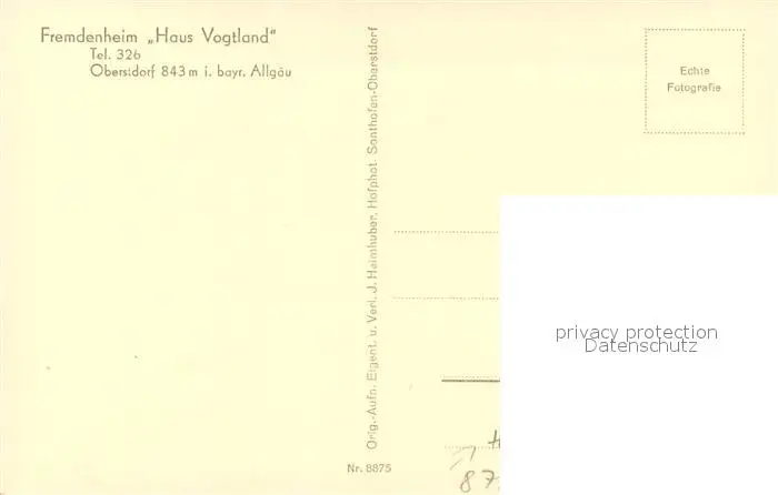 Oberstdorf Fremdenheim Haus Vogtland Oberstdorf postalisch nicht gelaufen 1921-1965 Erhaltung siehe scans [WerneD78] WernPID7