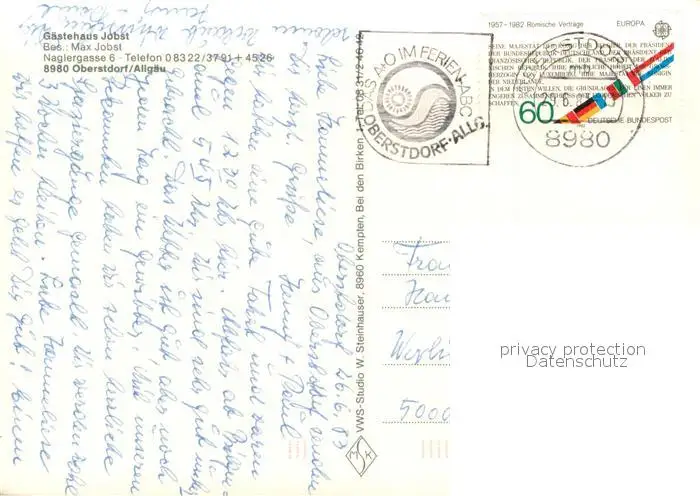 Oberstdorf Gaestehaus Jobst Liegewiese Oberstdorf postalisch gelaufen 1983 Erhaltung siehe scans [FriedD77] Frierer