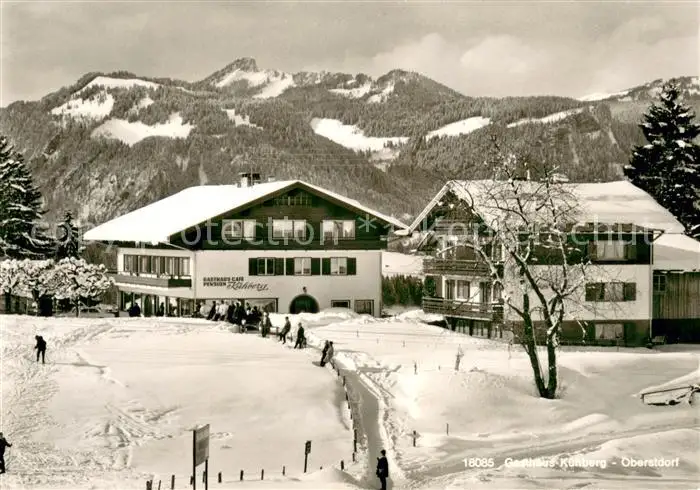 AK / Ansichtskarte Oberstdorf Gasthaus Cafe Pension Kuehberg Winterlandschaft Allgaeuer Alpen Oberstdorf