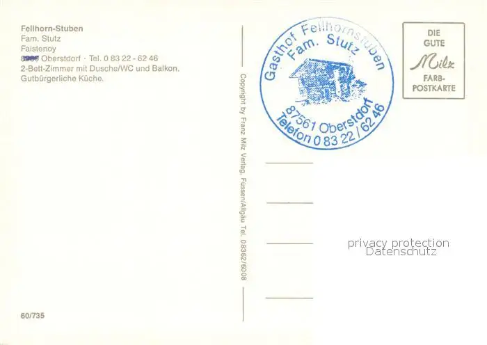 Oberstdorf Gaststaette Café Fellhorn-Stuben Fremdenzimmer Bergbahn Alpenpanorama Oberstdorf postalisch nicht gelaufen nach 1965 Erhaltung siehe scans [FriedD77] Frierer