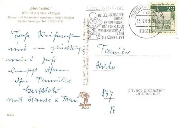 Oberstdorf Kategorie Alte Ansichtskarten Postkarten bx58453 Oberstdorf Heimenhof Oberstdorf postalisch gelaufen nach 1965 Erhaltung siehe scans [NatalD47]