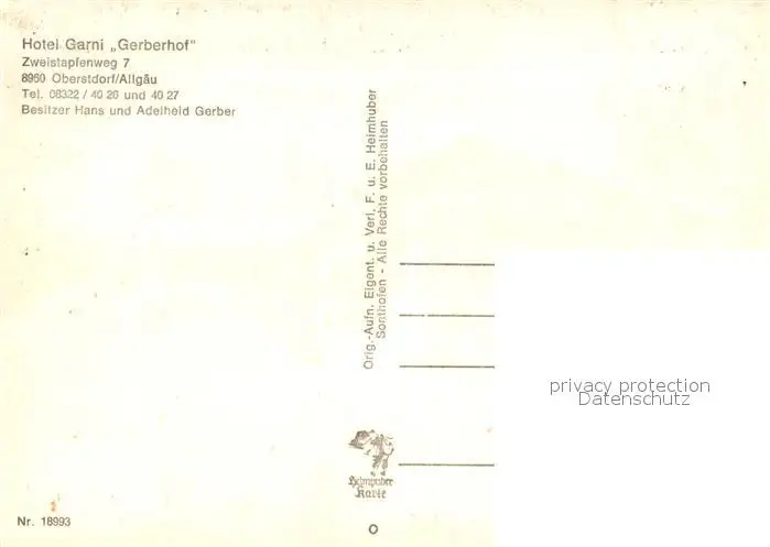 Oberstdorf Kategorie Alte Ansichtskarten Postkarten bx57710 Oberstdorf Hotel Garni Gerberhof Oberstdorf postalisch nicht gelaufen nach 1965 Erhaltung siehe scans [PaolaD17]