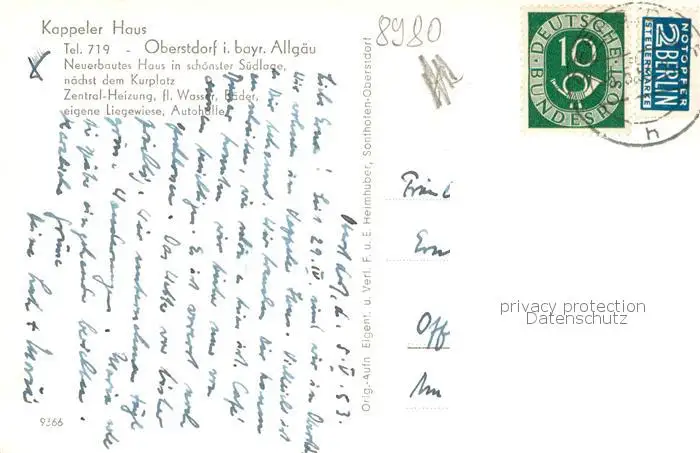 Oberstdorf Kappeler Haus Oberstdorf postalisch gelaufen 1921-1965 Erhaltung siehe scans [WerneD78] WernPID7