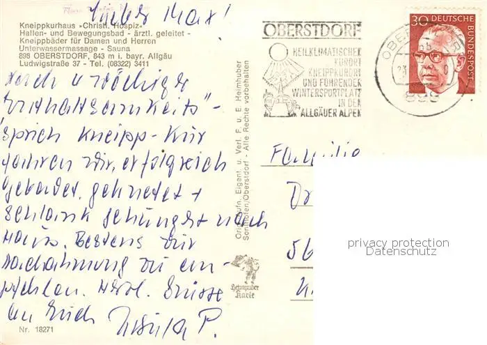 Oberstdorf Kneippkurhaus Christl.Hospiz Teilansichten m. Hallenbad Oberstdorf postalisch gelaufen 1973 Erhaltung siehe scans [LiesaD40] LiesID40