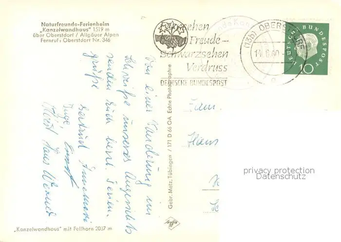 Oberstdorf Natrufreunde-Ferienheim Kanzelwandhaus Aussenansicht Oberstdorf postalisch gelaufen 1960 Erhaltung siehe scans [LiesaD40] LiesID40