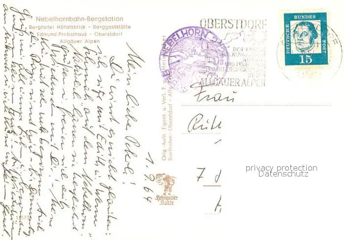 Oberstdorf Nebelhornbahn Bergstation Berghotel Hoefatsblick Berggaststaette Allgaeuer Alpen Oberstdorf postalisch gelaufen 1964 Erhaltung siehe scans [FriedD77] Frierer