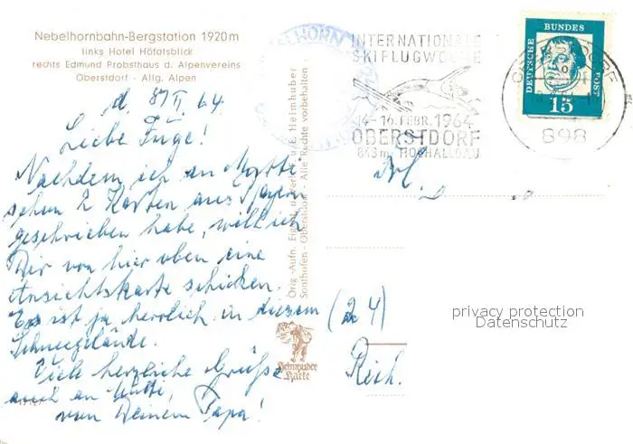 Oberstdorf Nebelhornbahn Bergstation Hotel Hoefatsblick Edmund Probsthaus Oberstdorf postalisch gelaufen 1964 Erhaltung siehe scans [WerneD78] WernPID7