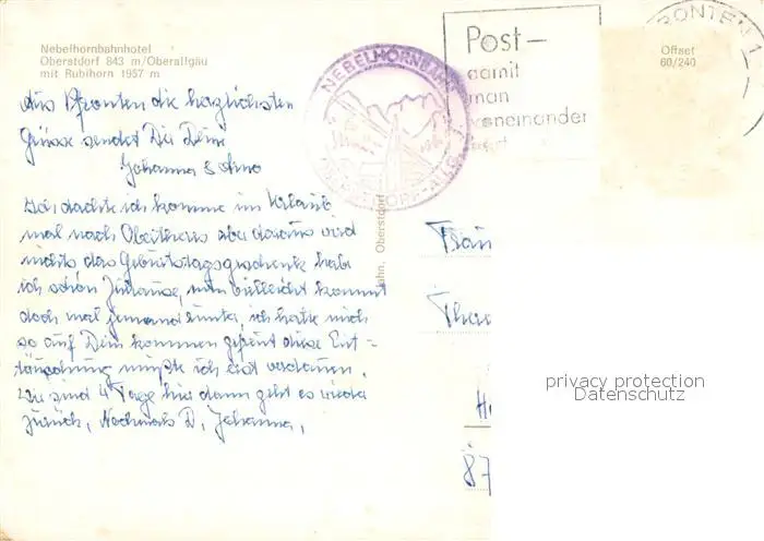 Oberstdorf Nebelhornbahnhotel mit Rubihorn Oberstdorf postalisch gelaufen nach 1965 Erhaltung siehe scans [WerneD78] WernPID7