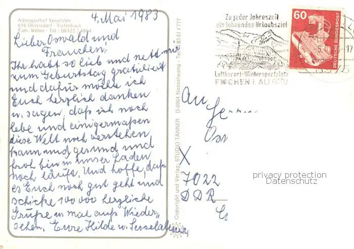 Oberstdorf Panorama Alpengasthof Sesselalpe Oberstdorf postalisch gelaufen 1983 Erhaltung siehe scans [WerneD78] WernPID7