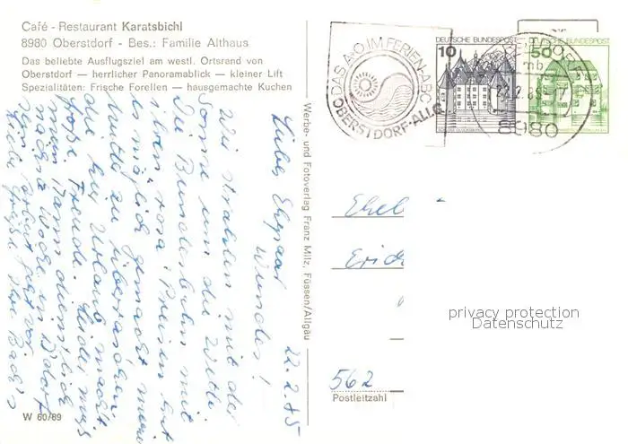 Oberstdorf Restaurant-Cafe Karatsbichl Winter Aussenansicht Winter Sonnenterrasse Oberstdorf postalisch gelaufen 1985 Erhaltung siehe scans [LiesaD40] LiesID40