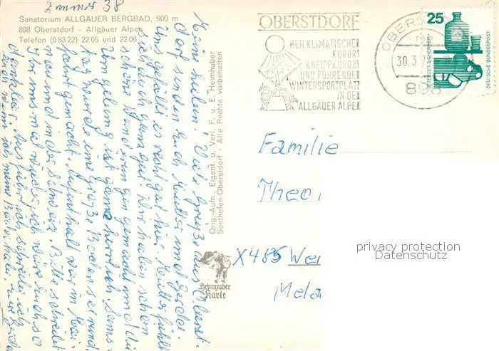 Oberstdorf Sanatorium Kurhotel Allgaeuer Bergbad Oberstdorf postalisch gelaufen 1974 Erhaltung siehe scans [WerneD78] WernPID7