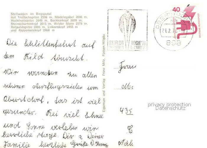 Oberstdorf Stellwagen Birgsautal Oberstdorf postalisch gelaufen 1976 Erhaltung siehe scans [NatalD47] NataID47