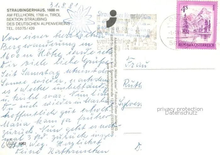 Oberstdorf Kategorie Alte Ansichtskarten Postkarten bx52463 Oberstdorf Straubingerhaus am Fellhorn Almvieh Kuehe Allgaeuer Alpen Oberstdorf postalisch gelaufen 1981 Erhaltung siehe scans [FriedD77]