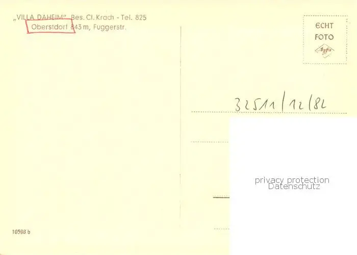 Oberstdorf Villa Daheim Oberstdorf postalisch nicht gelaufen nach 1965 Erhaltung siehe scans [FriedD77] Frierer