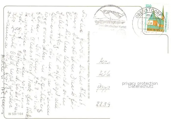 Oberstdorf Winterpanorama Allgaeuer Alpen Wintersportplatz Pferdeschlitten Schlucht Oberstdorf postalisch gelaufen 1995 Erhaltung siehe scans [FriedD77] Frierer