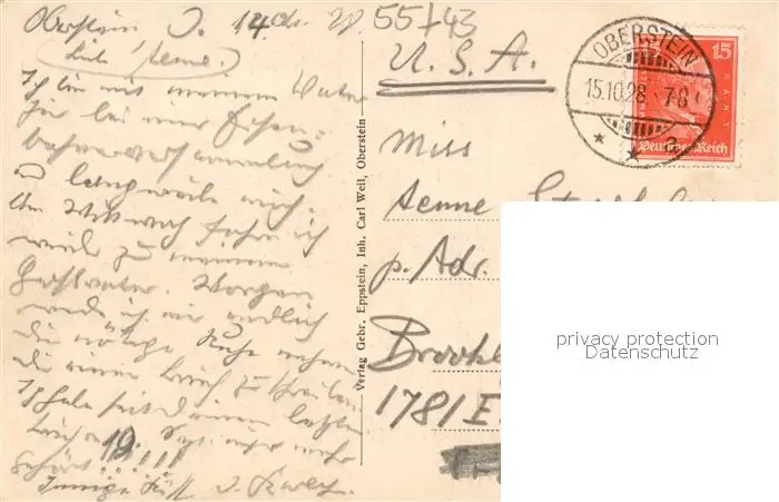 Oberstein_Nahe Blick zur Felsenkirche Oberstein_Nahe postalisch gelaufen 1928 Erhaltung siehe scans [FriedD77] Frierer