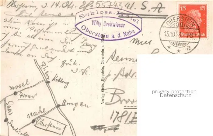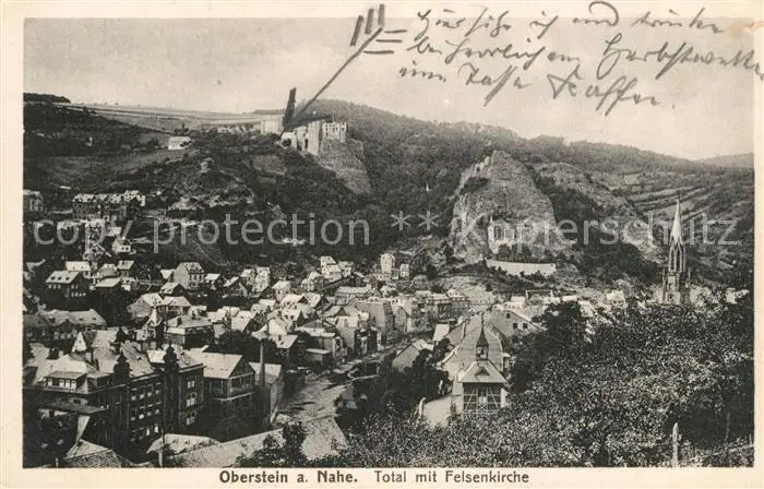 Oberstein_Nahe Totalansicht mit Felsenkirche Oberstein_Nahe postalisch gelaufen 1928 Erhaltung siehe scans [FriedD77] Frierer