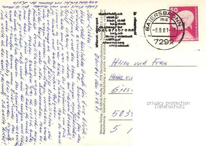 Obertal_Baiersbronn Obertal Baiersbronn postalisch gelaufen 1981 Erhaltung siehe scans [NatalD47] NataID47