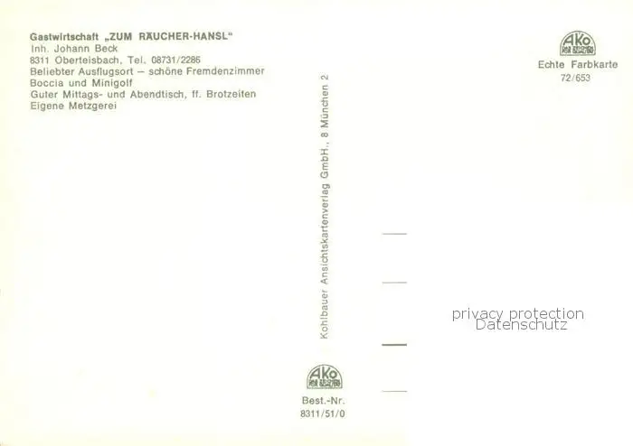 Oberteisbach Gasthof zum Raeucher Hansl Oberteisbach postalisch nicht gelaufen 1921-1965 Erhaltung siehe scans [FriedD77] Frierer