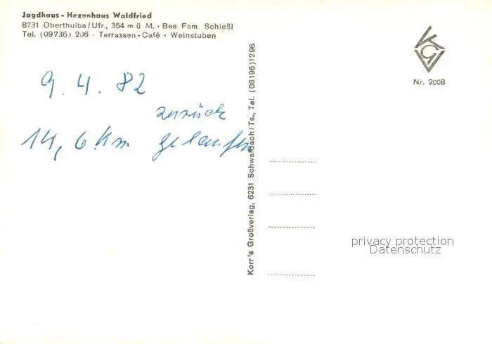 Oberthulba Jagdhaus Hexenhaus Waldfried Gastraum Hexe Oberthulba postalisch nicht gelaufen 1982 Erhaltung siehe scans [FriedD77] Frierer