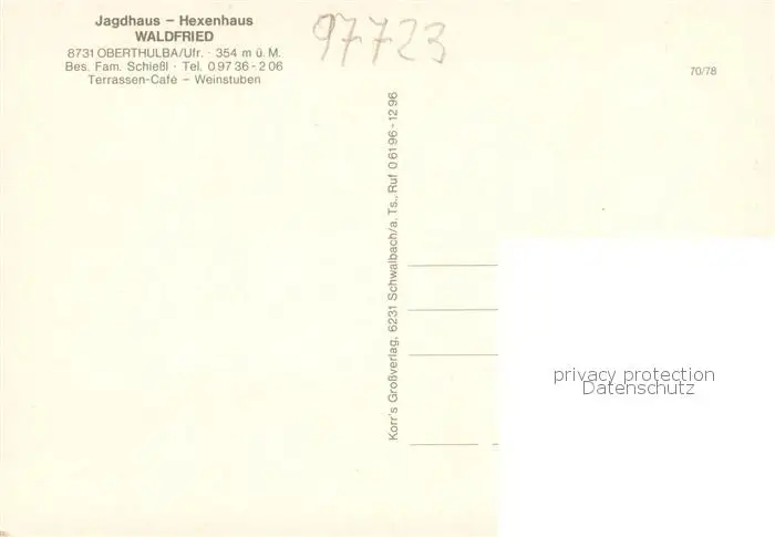 Oberthulba Jagdhaus Hexenhaus Waldfried Terrassen-Café Weinstuben Oberthulba postalisch nicht gelaufen nach 1965 Erhaltung siehe scans [FriedD77] Frierer