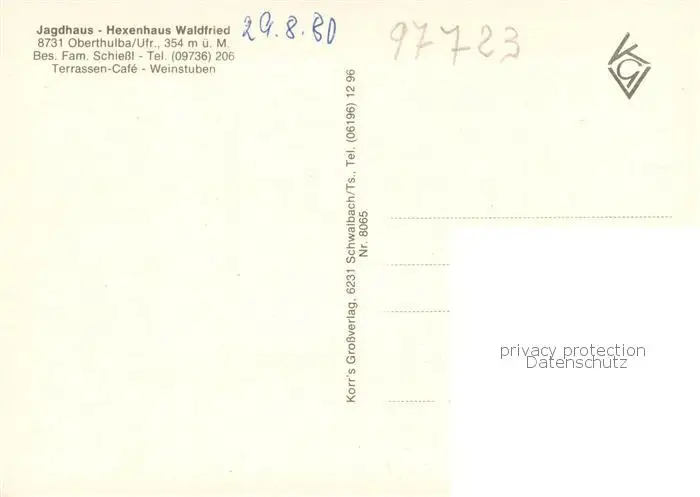 Oberthulba Jagdhaus Hexenhaus Waldfried Terrassen-Café Weinstuben Oberthulba postalisch nicht gelaufen 1980 Erhaltung siehe scans [FriedD77] Frierer