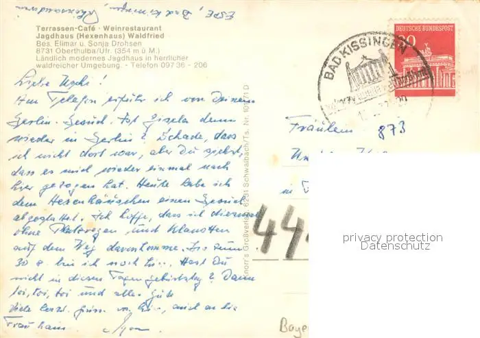 Oberthulba Terrassen Café Restaurant Jagdhaus Waldfried Hexenhaus Oberthulba postalisch gelaufen 1972 Erhaltung siehe scans [FriedD77] Frierer