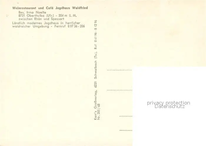 Oberthulba Terrassen-Café Weinrestaurant Jagdhaus Hexenhaus Waldfried Oberthulba postalisch nicht gelaufen nach 1965 Erhaltung siehe scans [FriedD77] Frierer