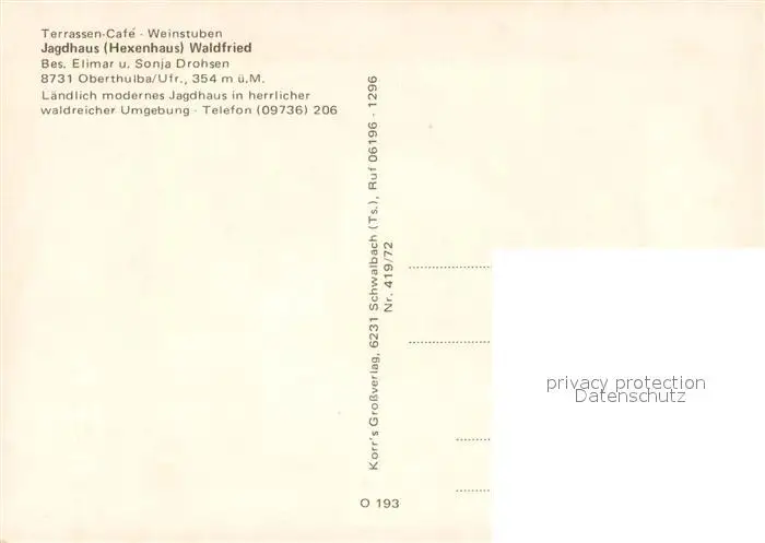 Oberthulba Terrassencafé Weinstuben Jagdhaus Hexenhaus Waldfried Oberthulba postalisch nicht gelaufen nach 1965 Erhaltung siehe scans [FriedD77] Frierer