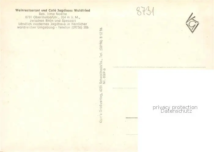Oberthulba Weinrestaurant Jagdhaus Waldfried Oberthulba postalisch nicht gelaufen nach 1965 Erhaltung siehe scans [WerneD78] WernPID7