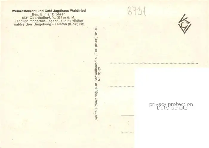 Oberthulba Weinrestaurant Jagdhaus Waldfried Oberthulba postalisch nicht gelaufen nach 1965 Erhaltung siehe scans [WerneD78] WernPID7