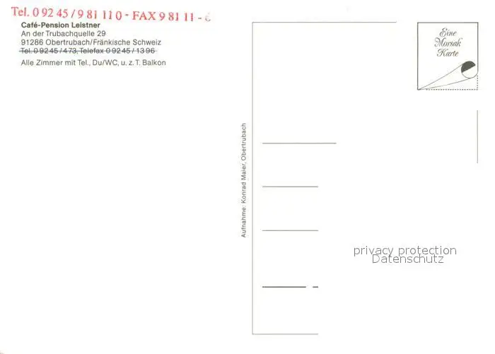 Obertrubach Café Pension Leistner Fraenkische Schweiz Obertrubach postalisch nicht gelaufen nach 1965 Erhaltung siehe scans [FriedD77] Frierer