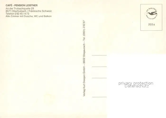 Obertrubach Café Pension Leistner Panorama Fraenkische Schweiz Obertrubach postalisch nicht gelaufen nach 1965 Erhaltung siehe scans [FriedD77] Frierer