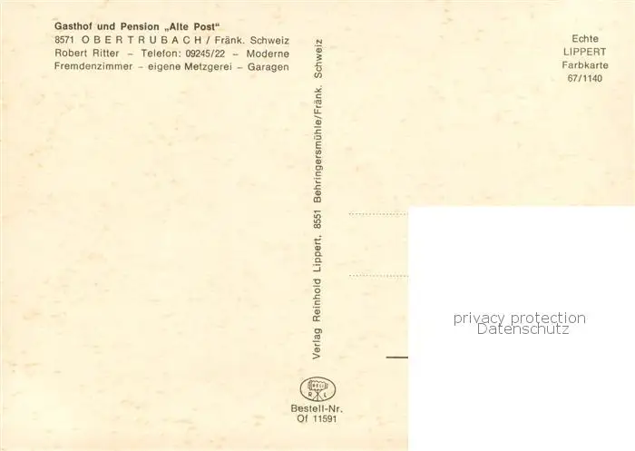 Obertrubach GAsthof-Pension Alte Post Aussenansicht Obertrubach postalisch nicht gelaufen nach 1965 Erhaltung siehe scans [LiesaD40] LiesID40