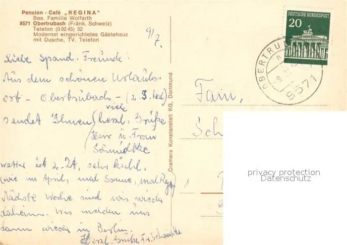 Obertrubach Gaestehaus Pension Cafe Regina Gaststube Liegeterrasse Obertrubach postalisch gelaufen 1968 Erhaltung siehe scans [WerneD78] WernPID7