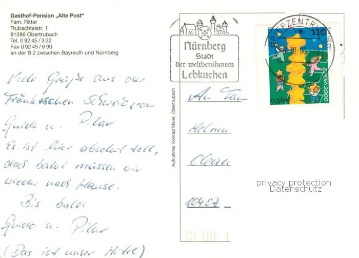 Obertrubach Gasthof Pension Alte Post Obertrubach postalisch gelaufen 2006 Erhaltung siehe scans [FriedD77] Frierer