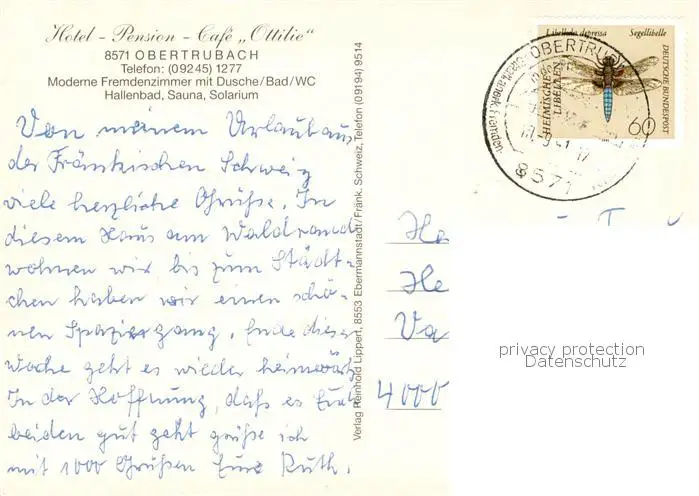 Obertrubach Hotel Ottilie Cafe Obertrubach postalisch gelaufen nach 1965 Erhaltung siehe scans [FriedD77] Frierer